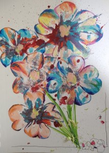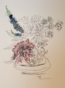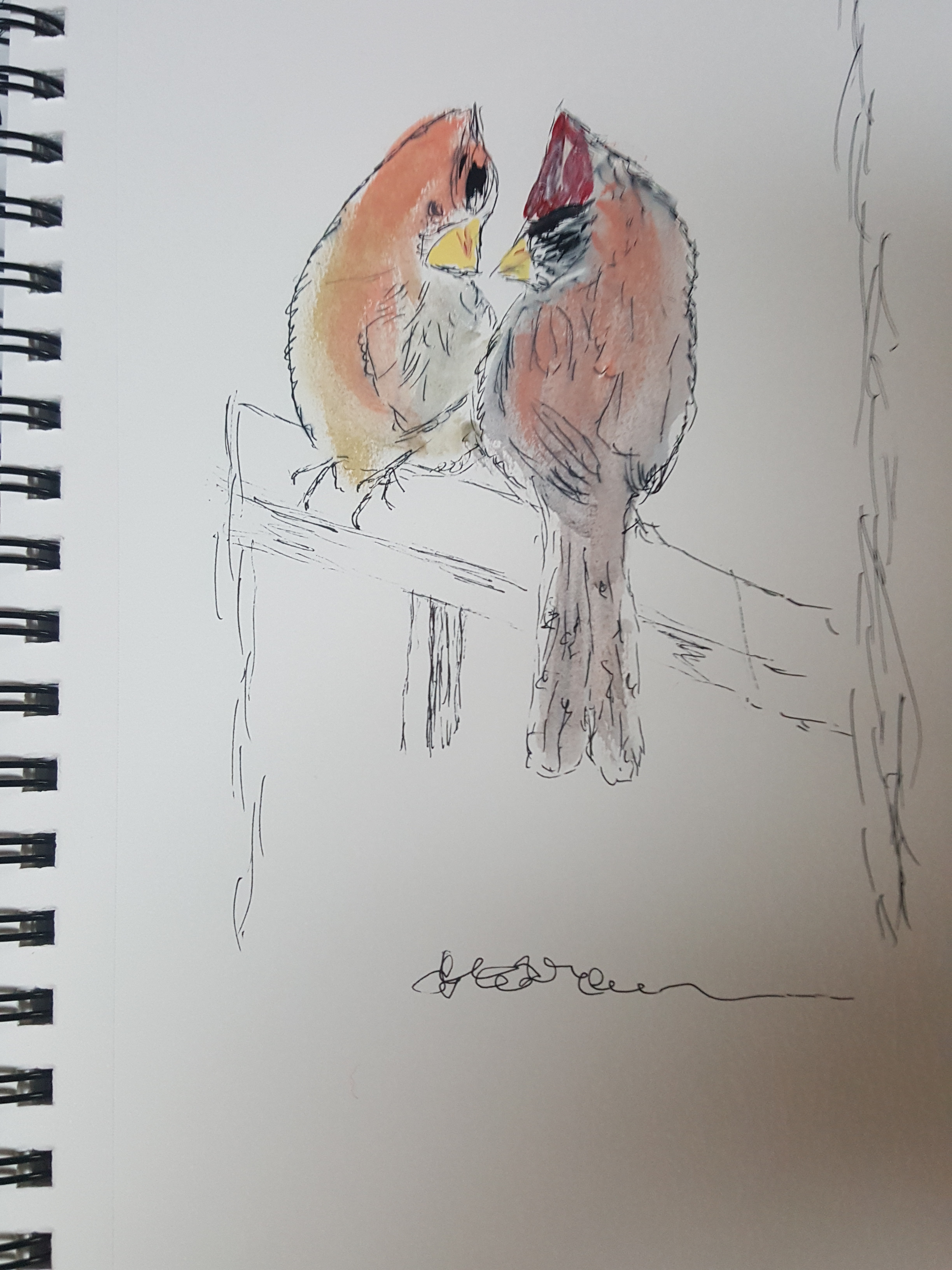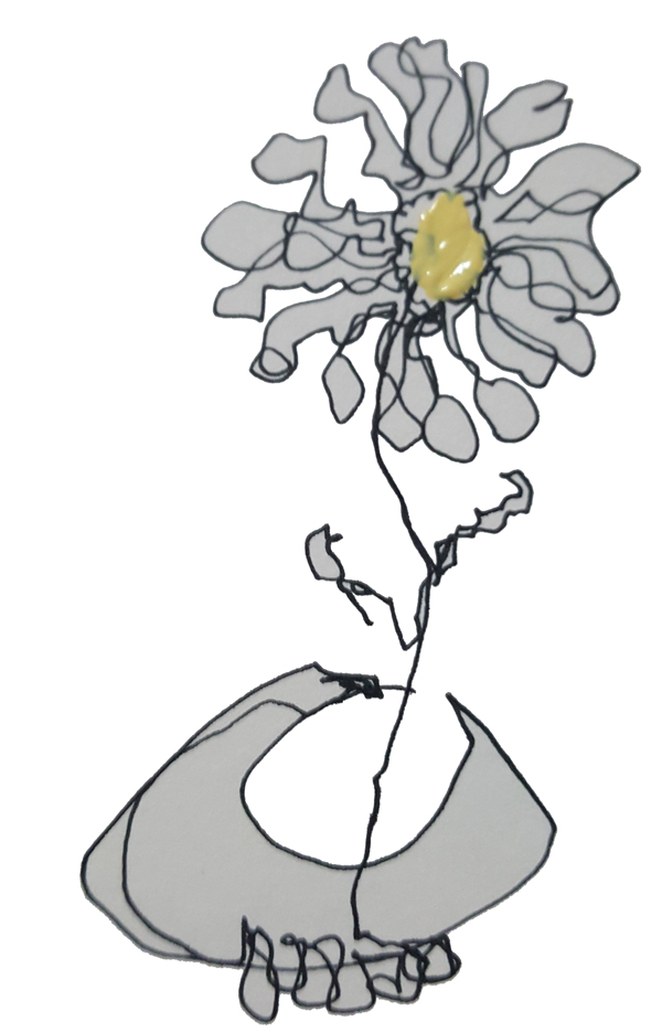 Pencil. Ink. Fallen tree blossoms. Paint.
